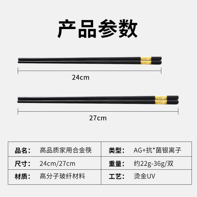 抗菌高档合金筷子家用防滑防霉不发霉耐高温酒店饭店餐厅商用批发 9.90 已售:0件
