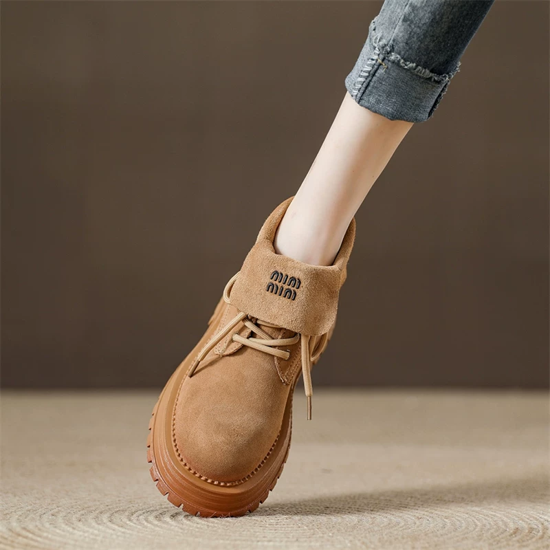 磨砂真皮厚底英伦马丁靴女2024新款短靴子字母翻领两穿机车大黄靴