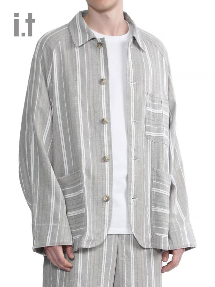 男装长袖衬衫夏季日系复古条纹上衣 198.00 已售:0件
