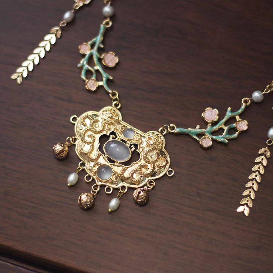 原创璎珞金色项圈古风古装春夏款汉服配饰古典项链 平安锁