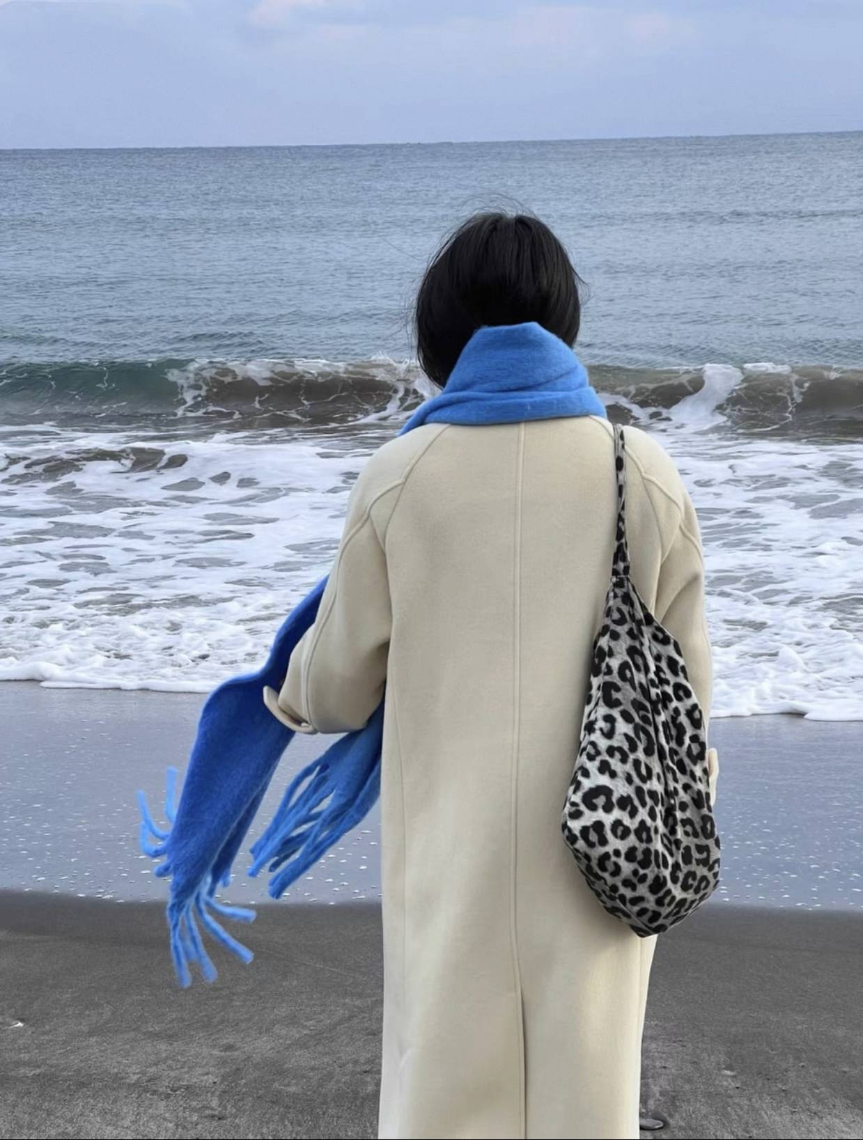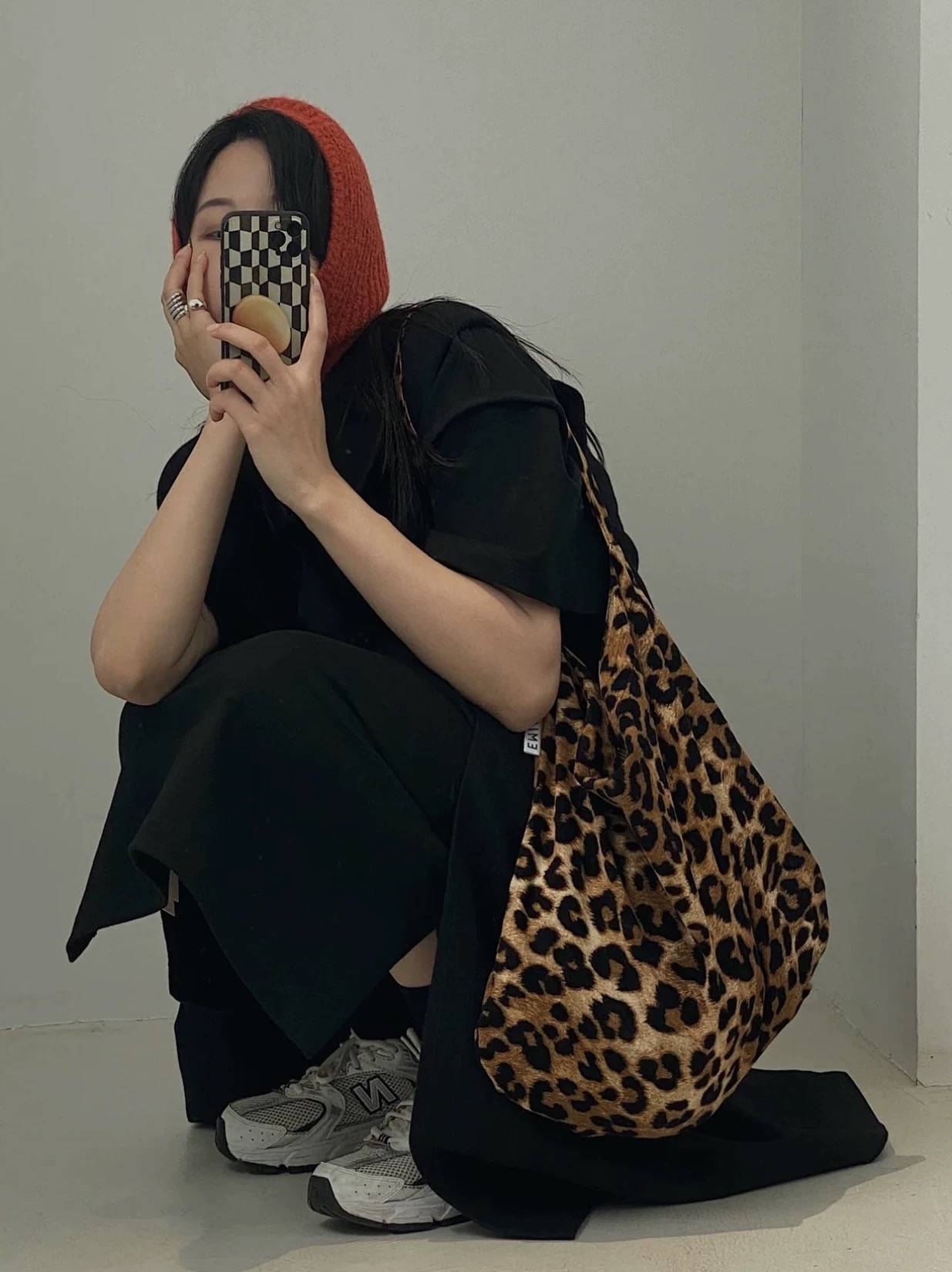 白百合韩素汐同款灰色大豹纹灯芯绒斜挎单肩布袋托特包大容量