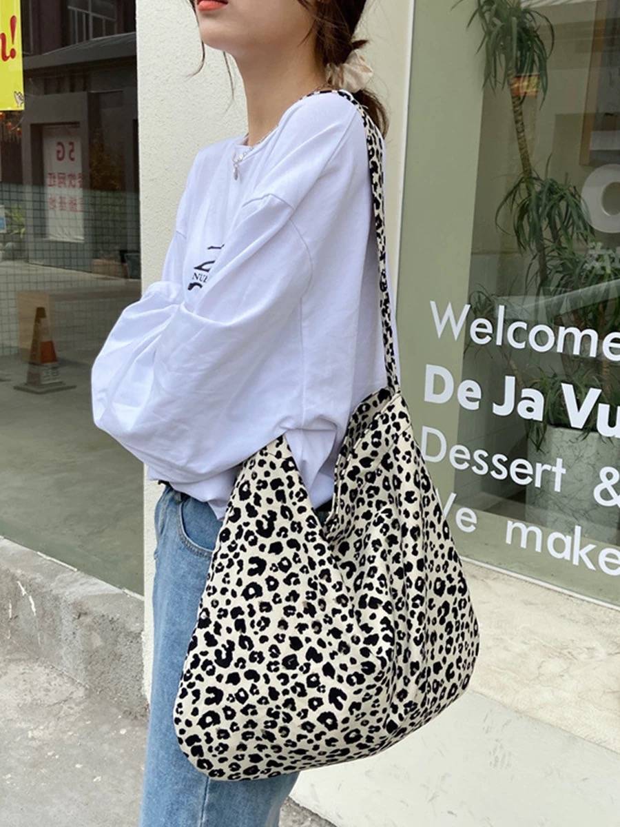 豹纹控 帆布袋 同款单肩斜挎包轻便