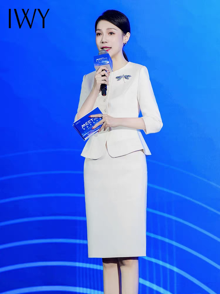 iwy米白色西装套裙七分袖主持人演讲比赛婚礼案场女神正式场合裙 168.00 已售:0件