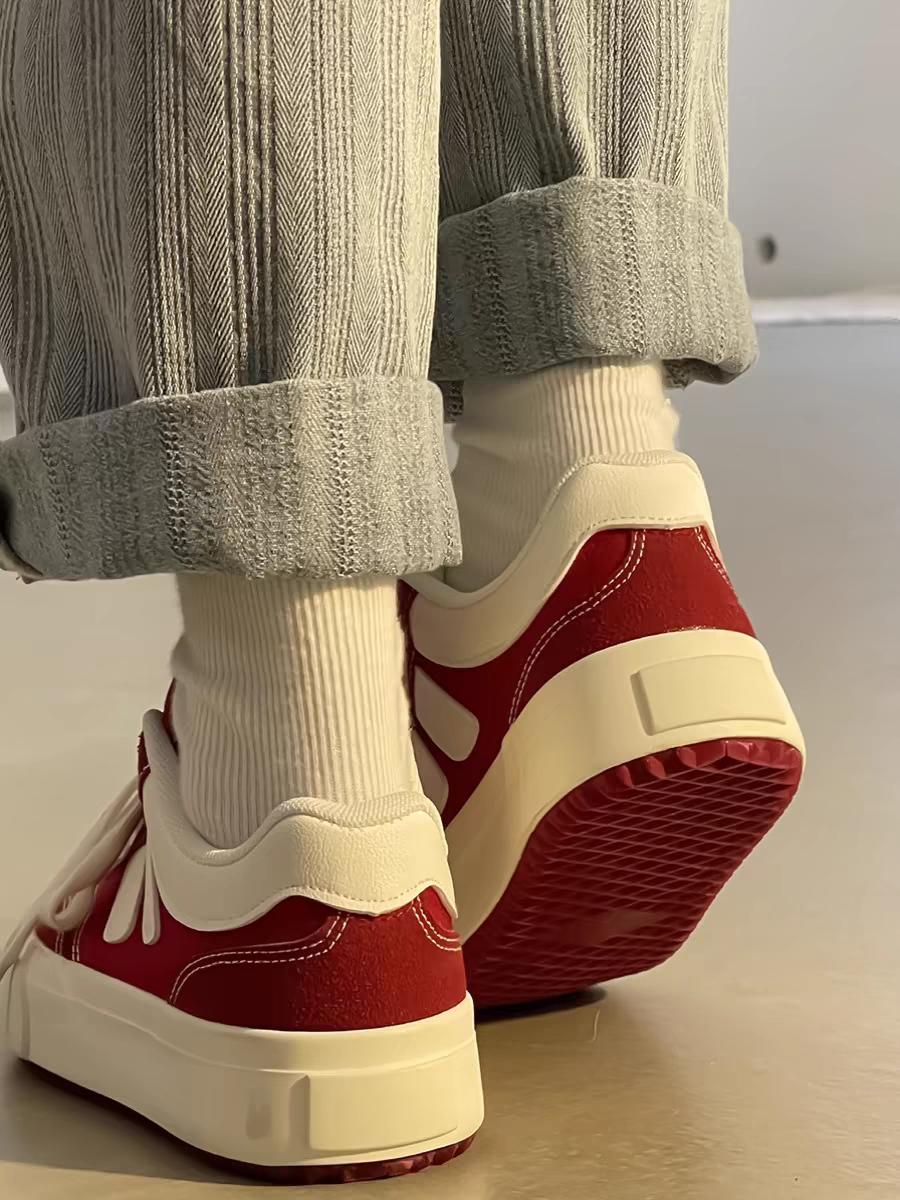 人本红色厚底帆布鞋女夏季百搭小白鞋板鞋2024新款小众休闲运动鞋