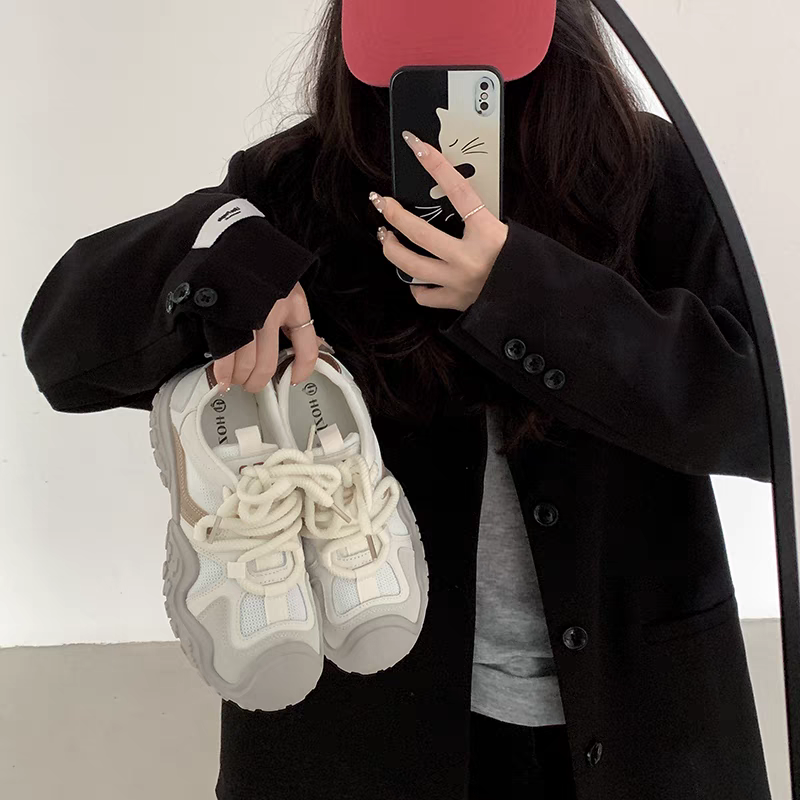 韩版老爹鞋女2023新款夏季网面透气休闲运动鞋百搭厚底学生德训鞋