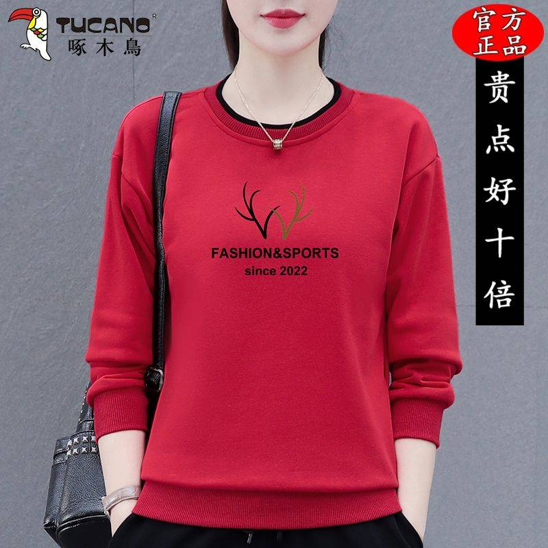 啄木鸟圆领卫衣女2025春秋新款中年妈妈时尚百搭宽松显瘦长袖上衣 98.00 已售:0件