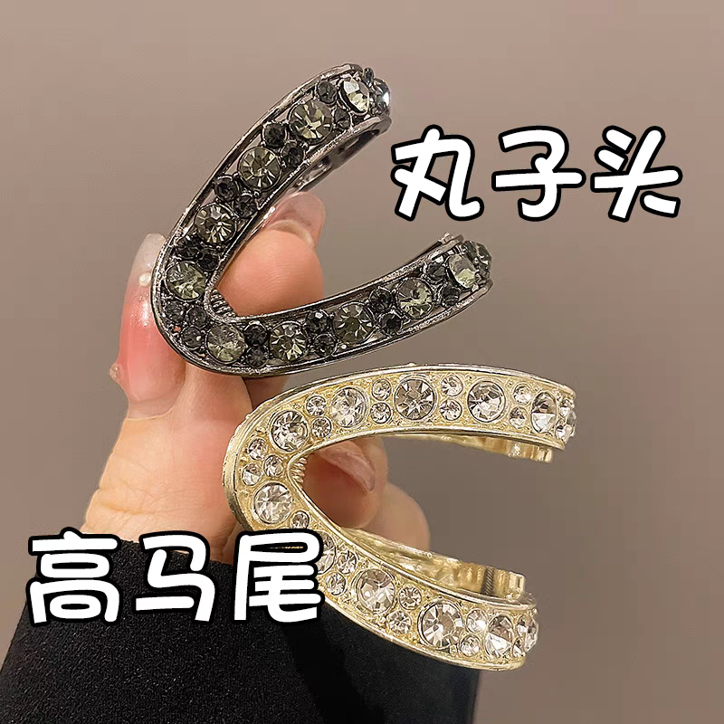 高马尾V型抓夹固定神器后脑勺丸子头发夹高级感水钻夹子头饰女