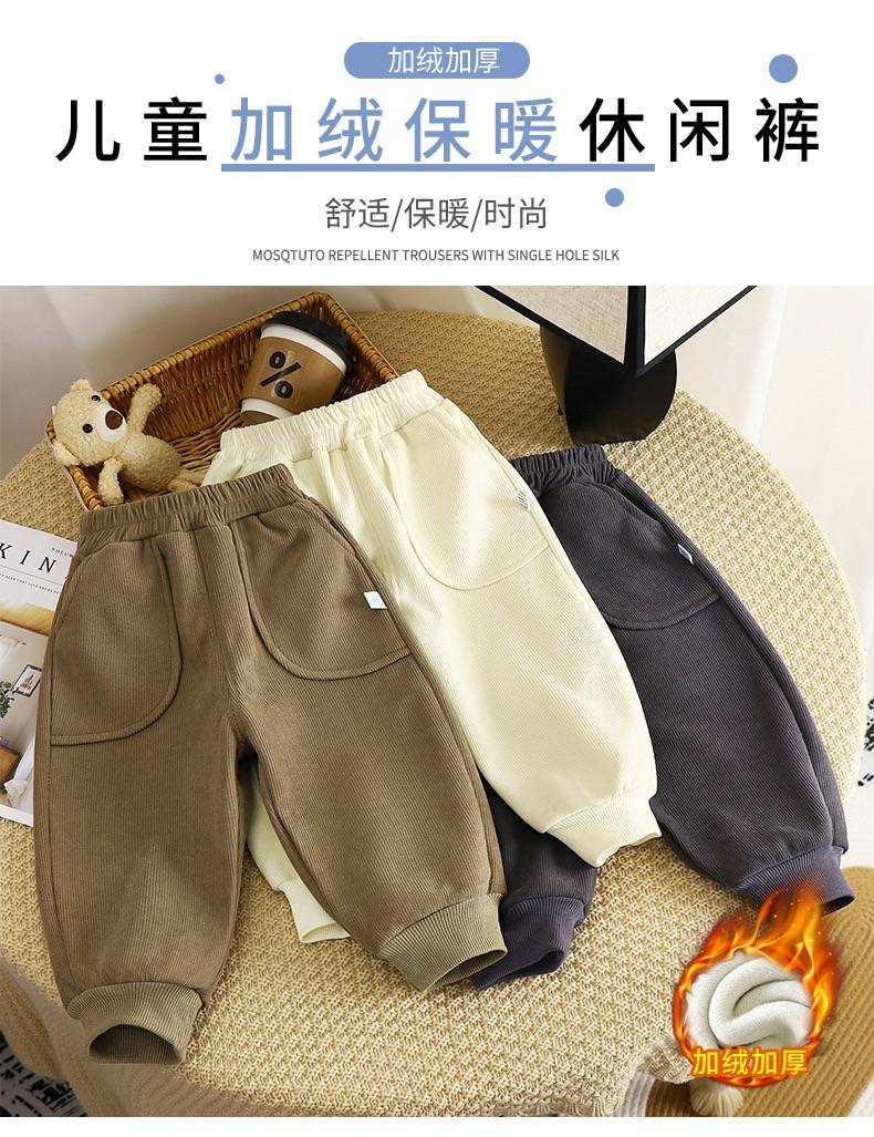 儿童加绒裤子冬装新款男童加厚宝宝保暖女童长裤运动裤童裤批发