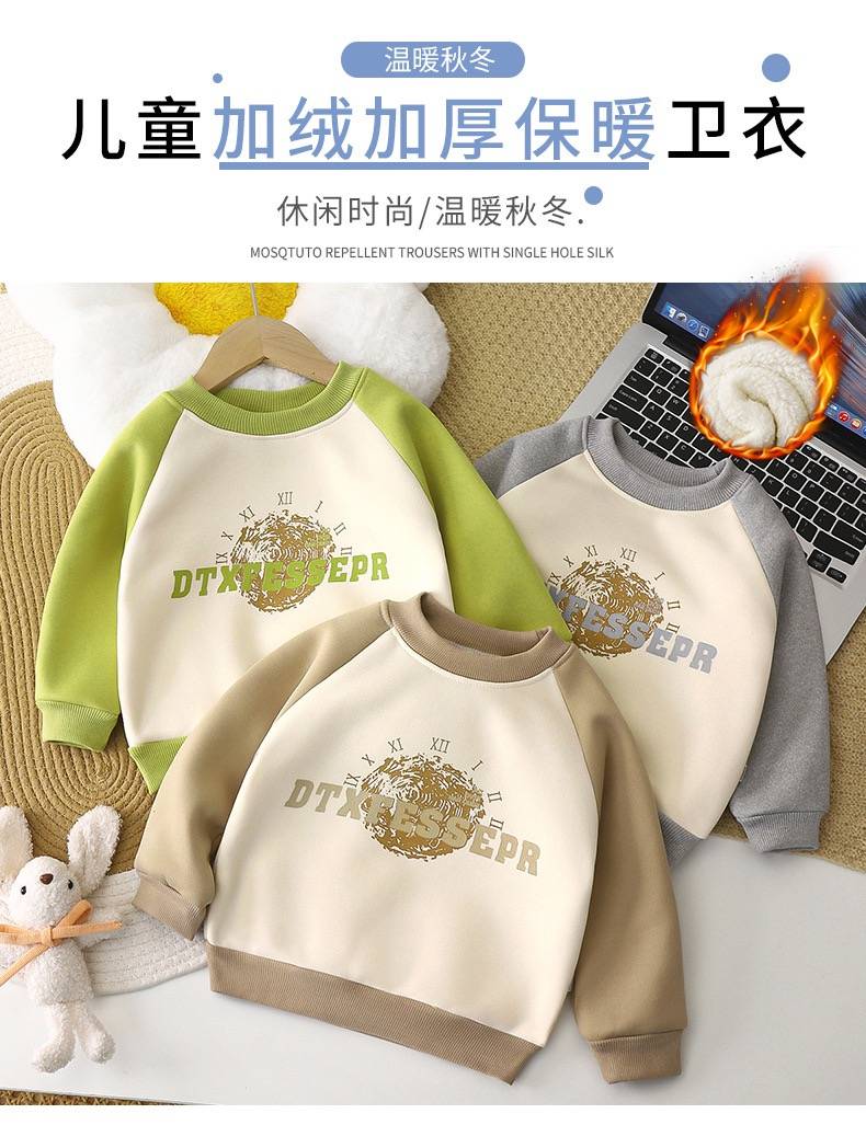 儿童卫衣加绒冬季新款加厚男童保暖外穿2023宝宝长袖打底衫童装