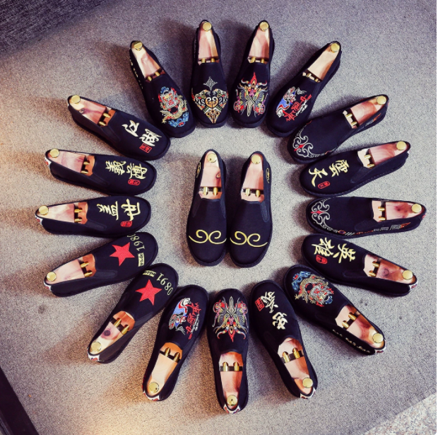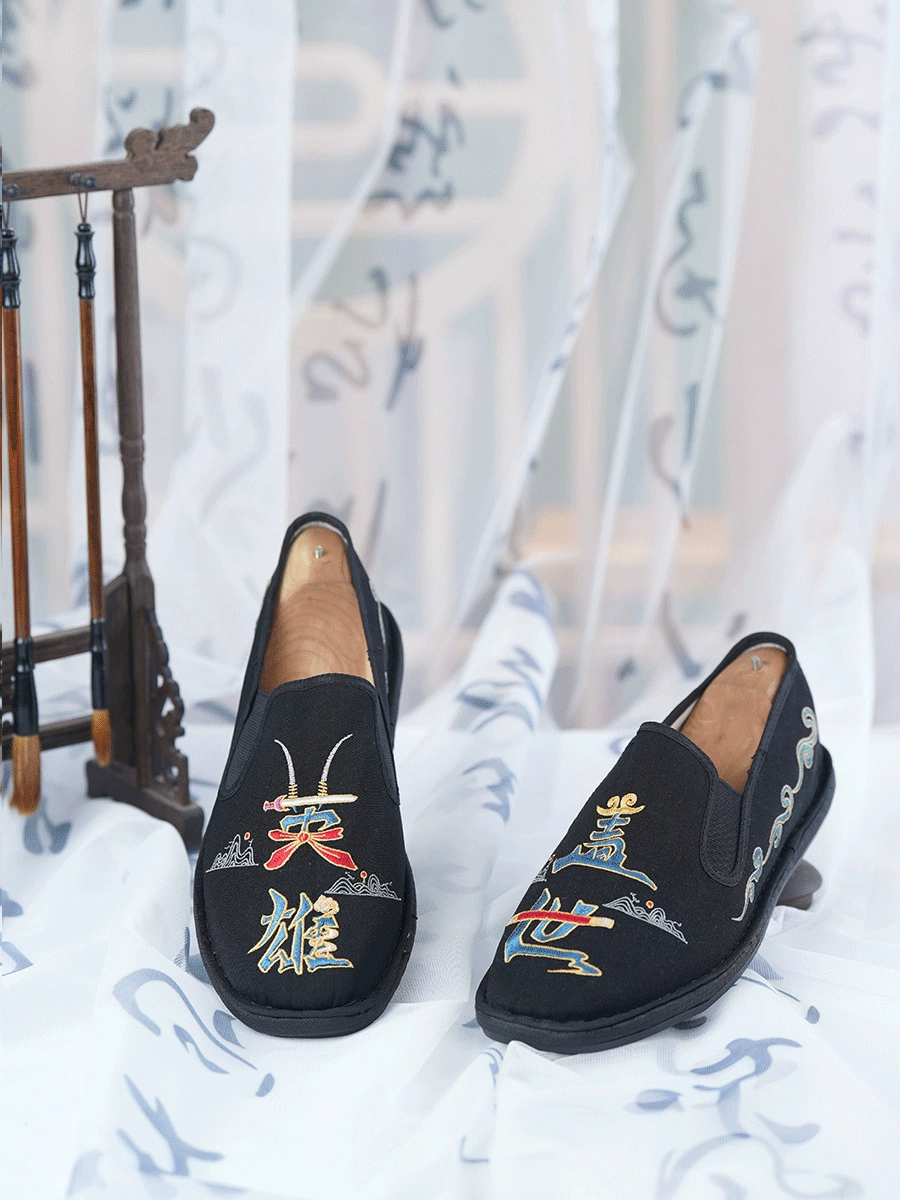 网红盖世英雄豆豆鞋驾车社会盖世英雄黑情侣帆布板脸谱色鬼刺绣透