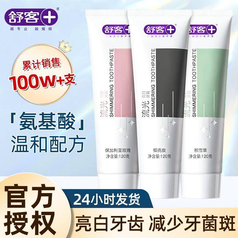 舒客氨基酸流光牙膏美白口臭祛黄去渍酵素亮白清新口气家庭装实惠