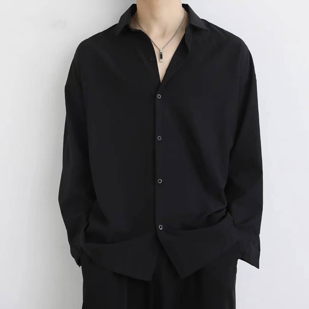 2020耐看复古绿衬衫简约配领带撞色休闲衬衣男士春夏宽松寸衣百搭