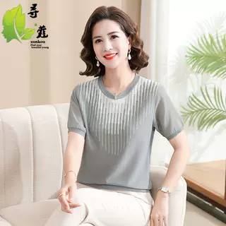 年轻妈妈装针织上衣夏季薄款短袖中年装女2023年中老年人服装新款