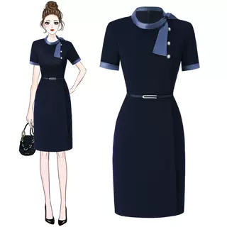 职业女装连衣裙级感空姐制服美容珠酒店前台气质礼仪服装
