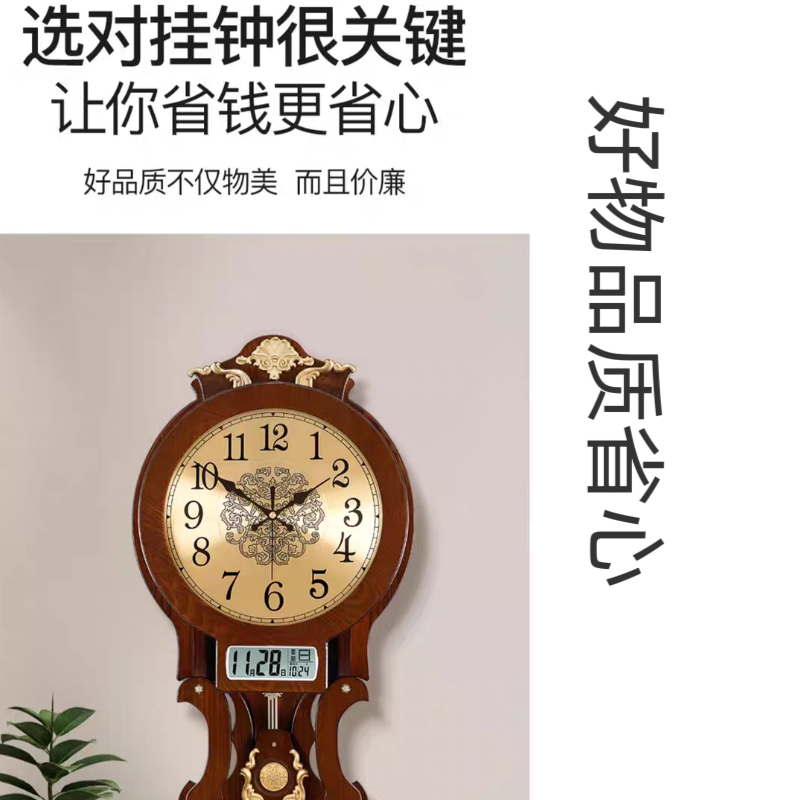 木质自MJK钟表实木双面挂钟客厅 103.00 已售:0件