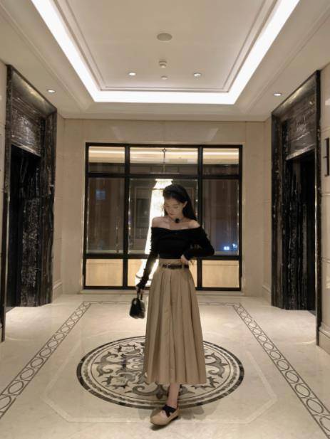 YYW汪澜的妹妹 天真小千金 贵气简约气质一字领针织衫半身裙套装