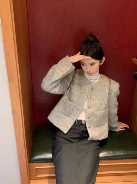 灰色小香风短款外套女早春秋冬季新款时髦洋气千金风名媛炸街上衣