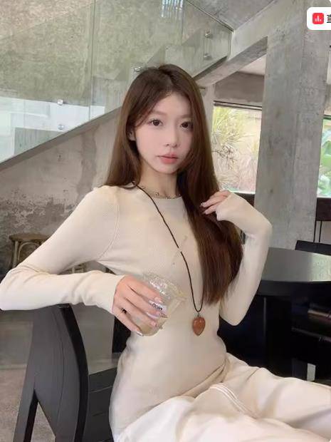 正肩圆领休闲内搭长袖针织衫女秋冬小个子辣妹修身打底衫上衣