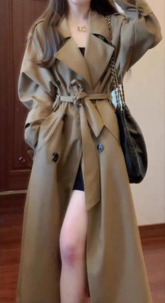 韩系卡其色翻领中长款风衣女春秋高级感气质系带收腰大衣外套秋冬