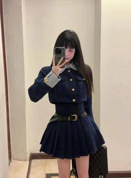 冬季新款女装套装学院小香风短外套连衣裙子两件套入冬搭配一整套