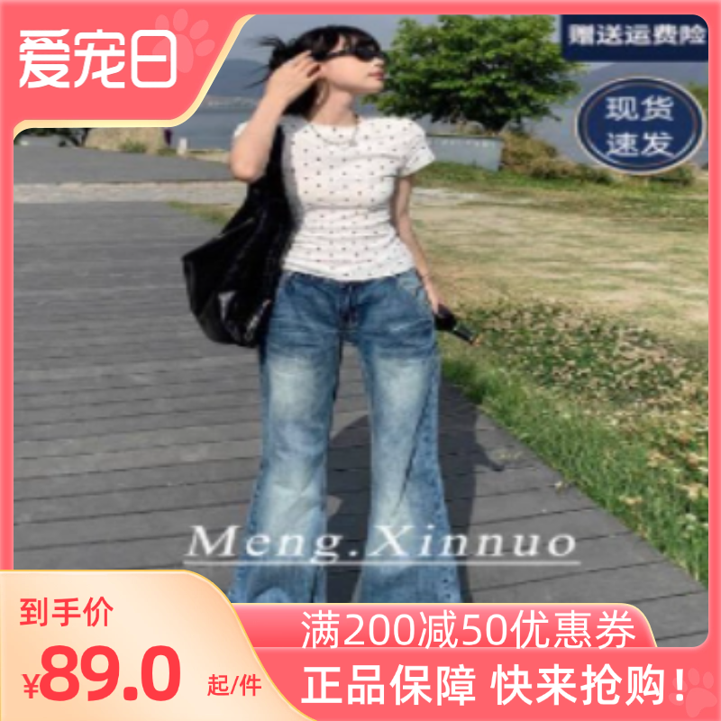 美式复古辣妹低腰微喇直筒牛仔裤女2024秋季阔腿垂感百搭拖地裤子