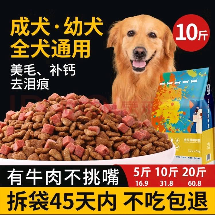 亿佳果狗粮通用型5KG20斤成犬幼犬泰迪金毛牛肉味冻干狗粮高钙美毛营养 高钙壮骨升级款纯粮(成犬) 5斤