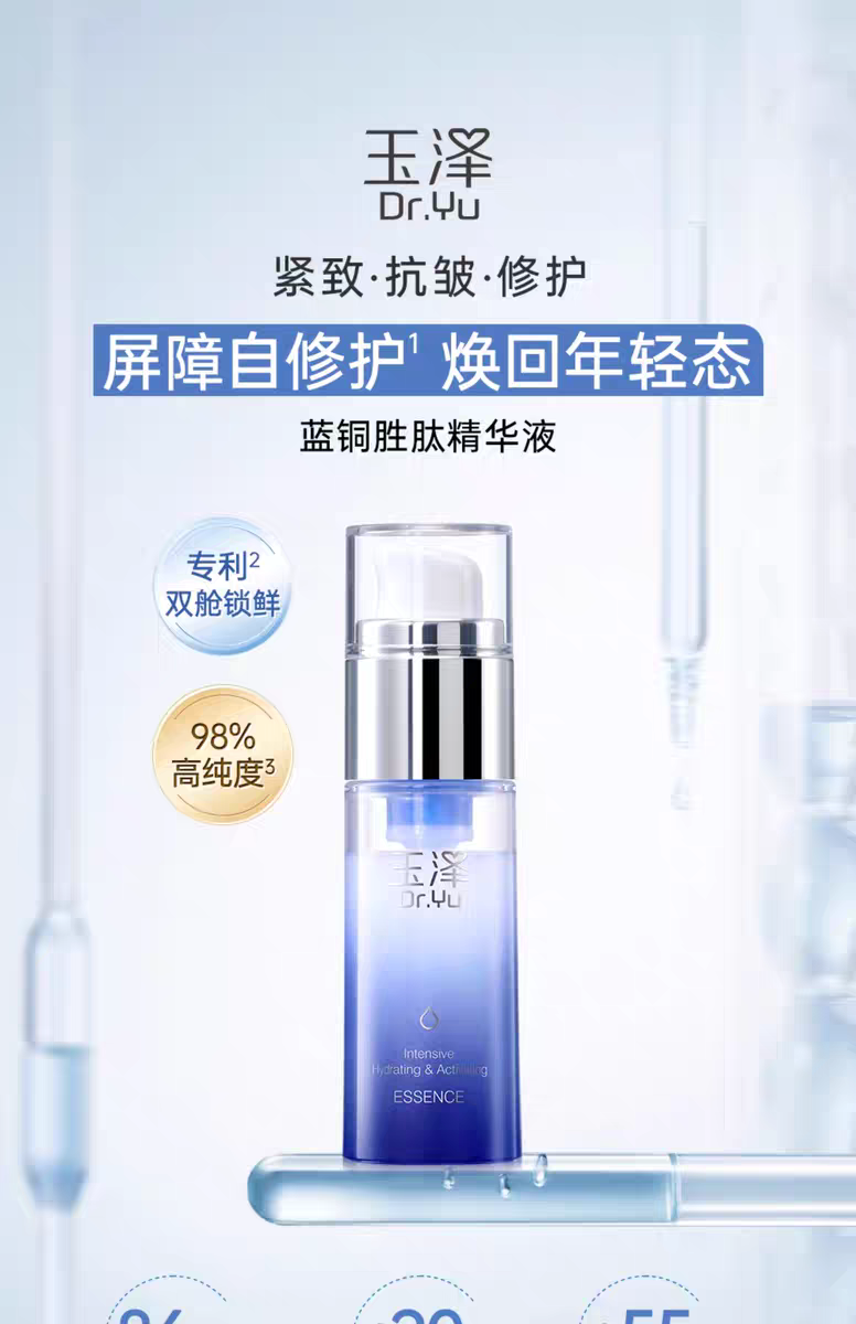 精华液玉泽蓝舱精华臻安修护蓝铜胜肽精华液敏感肌修护屏障紧致保湿舒缓精华液