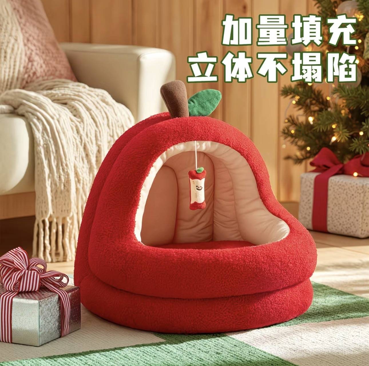 苹果猫窝冬季保暖半封闭安全感猫咪睡窝四季通用猫床超级大猫窝 55.10 已售:0件