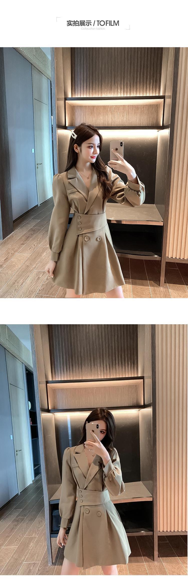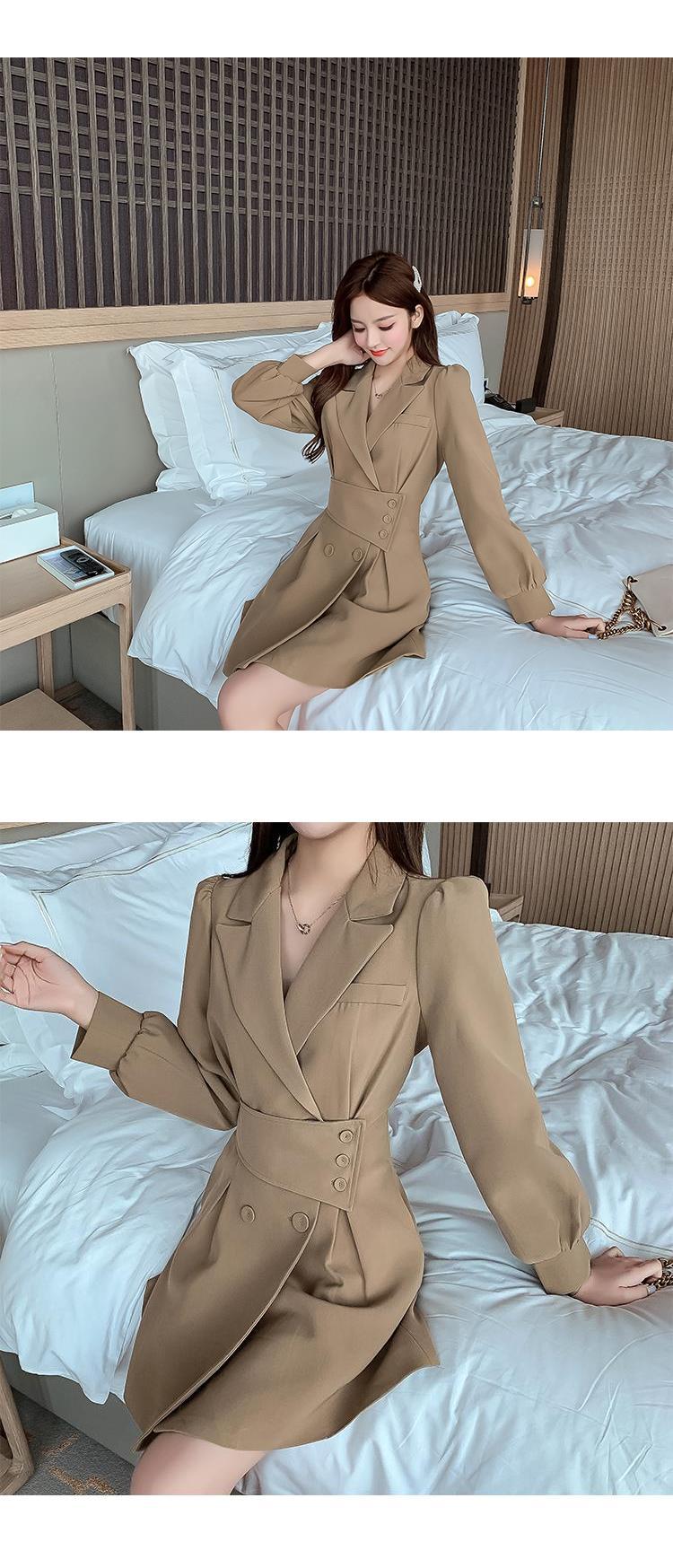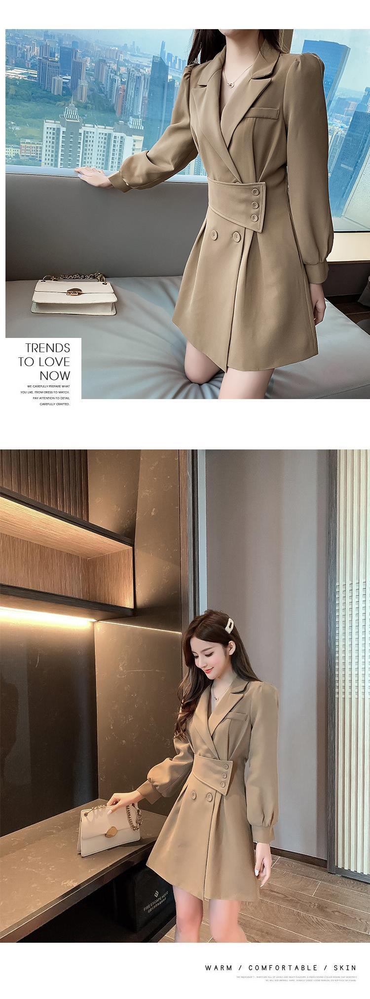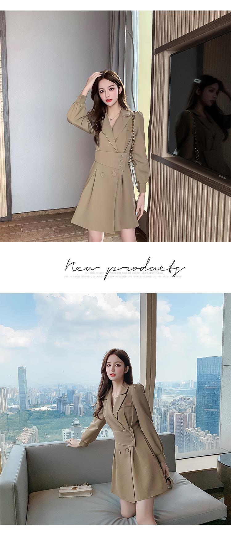 秋季黑色西装领拼接收腰法式气质通勤中长款连衣裙