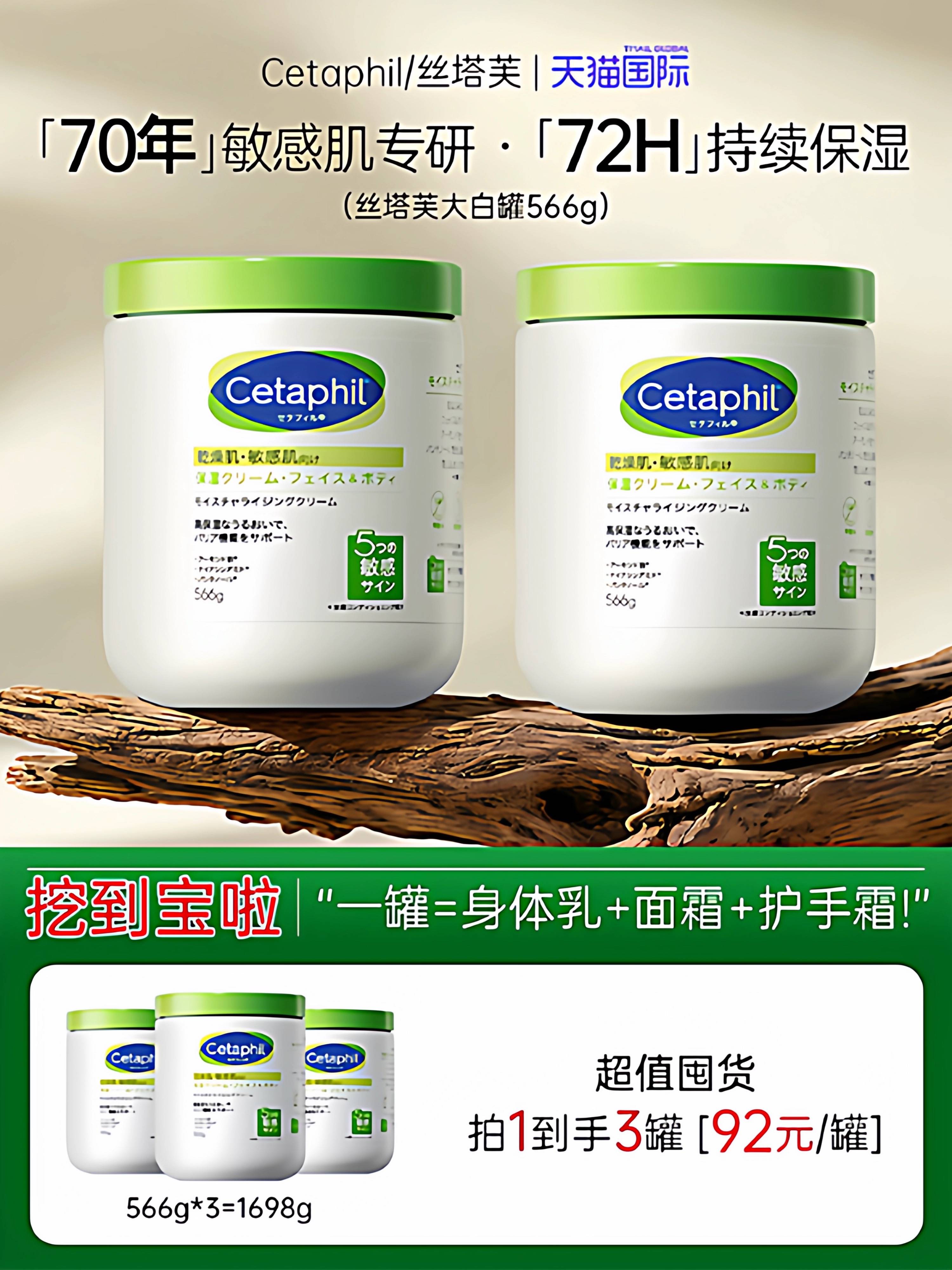 cetaphil丝塔芙大白罐日版身体乳秋冬保湿霜补水保湿润肤面霜566g 50.00 已售:3件