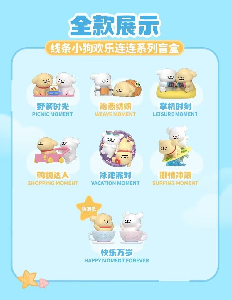 kkv正品玩乐主义线条小狗欢乐连连看系列盲盒 玩游戏款