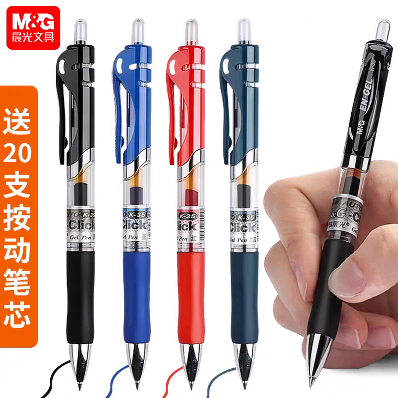 晨光k35按动中性笔笔芯学生用0.5碳素笔黑色中性笔考试专用笔考研高颜值蓝红笔老师批改作业刷题笔初中生