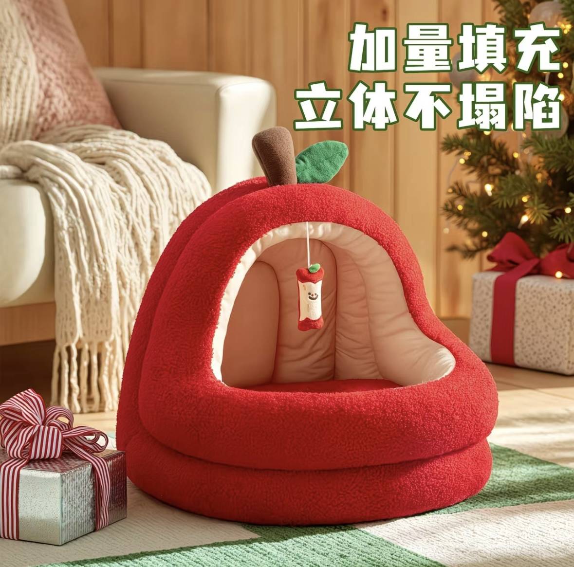 苹果猫窝冬季保暖半封闭安全感猫咪睡窝四季通用猫床超级大猫窝