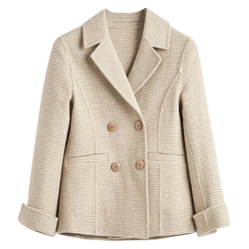 2020秋冬新款千鸟格羊毛短款西装领大衣双面呢大衣复古简单时尚