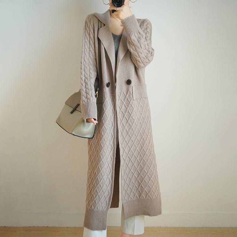 2020秋冬新款羊毛中长款开衫女宽松慵懒大码毛衣针织大衣羊毛外套