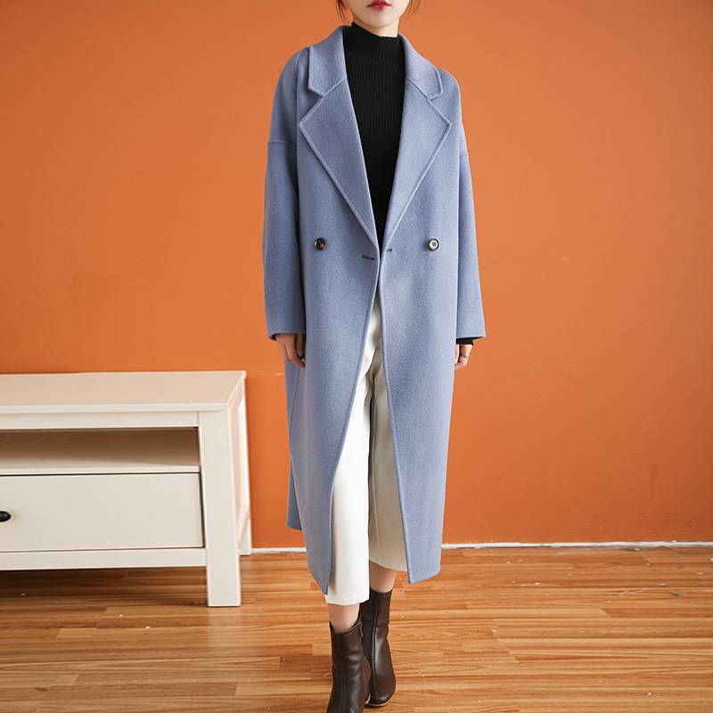 2020年秋冬新款韩版双面呢手缝长款羊毛大衣单排扣中长款毛呢外套