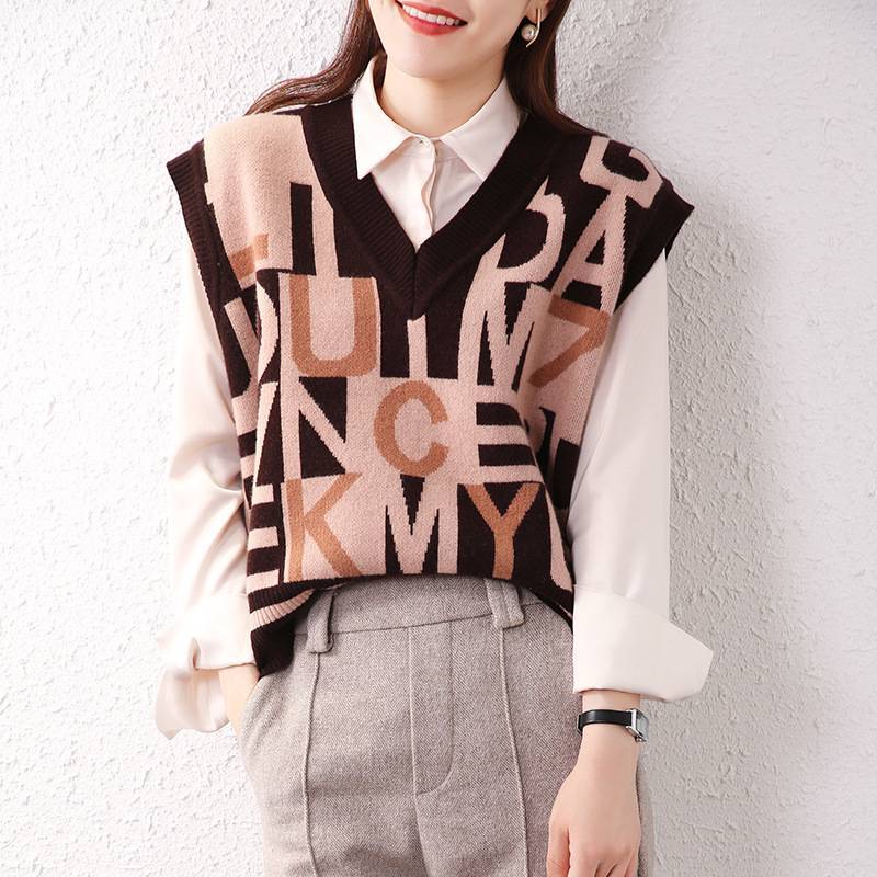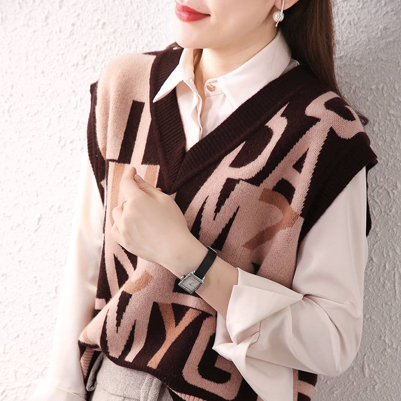 2020秋冬新款坎肩提花休闲背心欧美修身羊毛衣女套头针织马甲女
