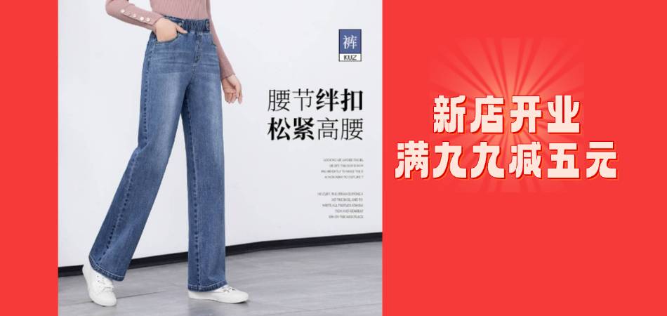 2020春夏新款批发松紧腰高腰牛仔裤女宽松直筒显瘦阔腿长裤