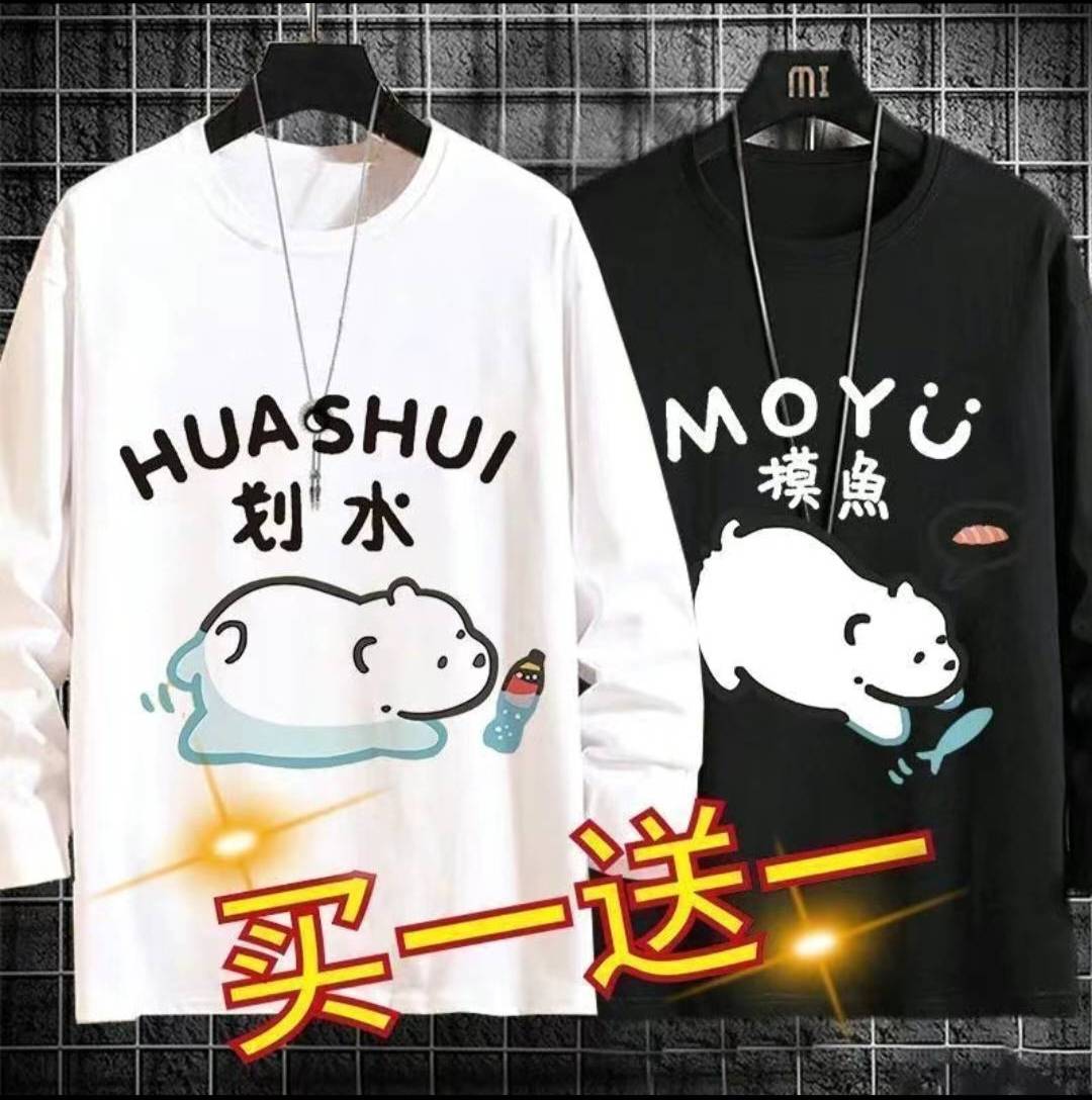 2025新款摸鱼长衫男秋冬国潮两件装宽松圆领