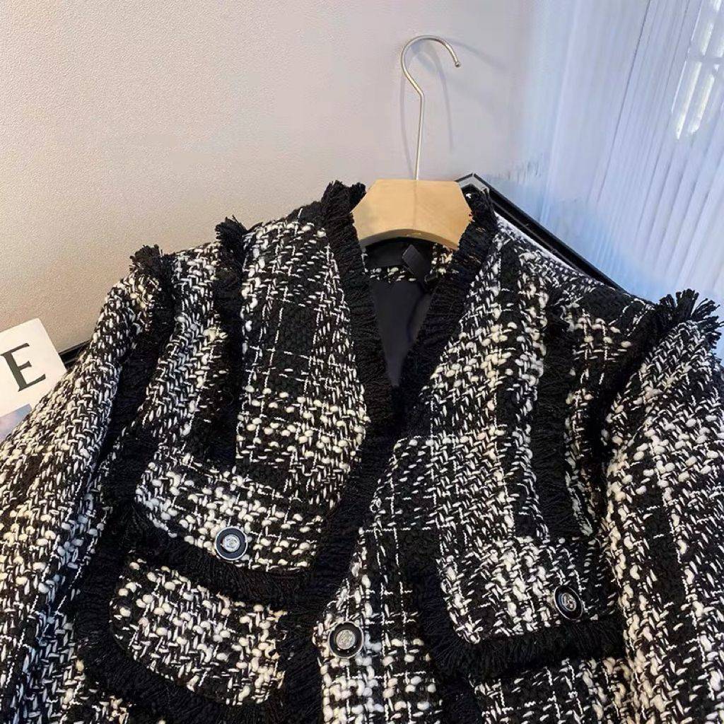 格子小香风外套女春秋款2023年新款高级设计感小众复古棒球服上衣