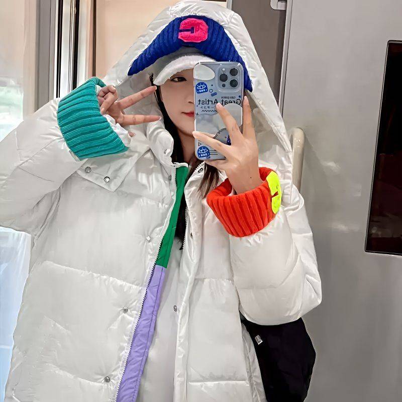 韩版气质时尚潮牌字母拼接撞色棉服女冬季新款棉服多巴胺外套保暖