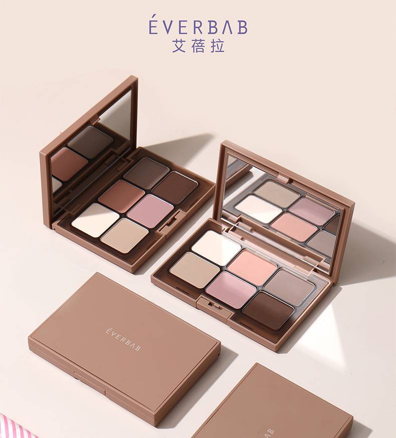 everbab素哑六色眼影盘哑光大地色便携彩妆腮红高光修容一体盘