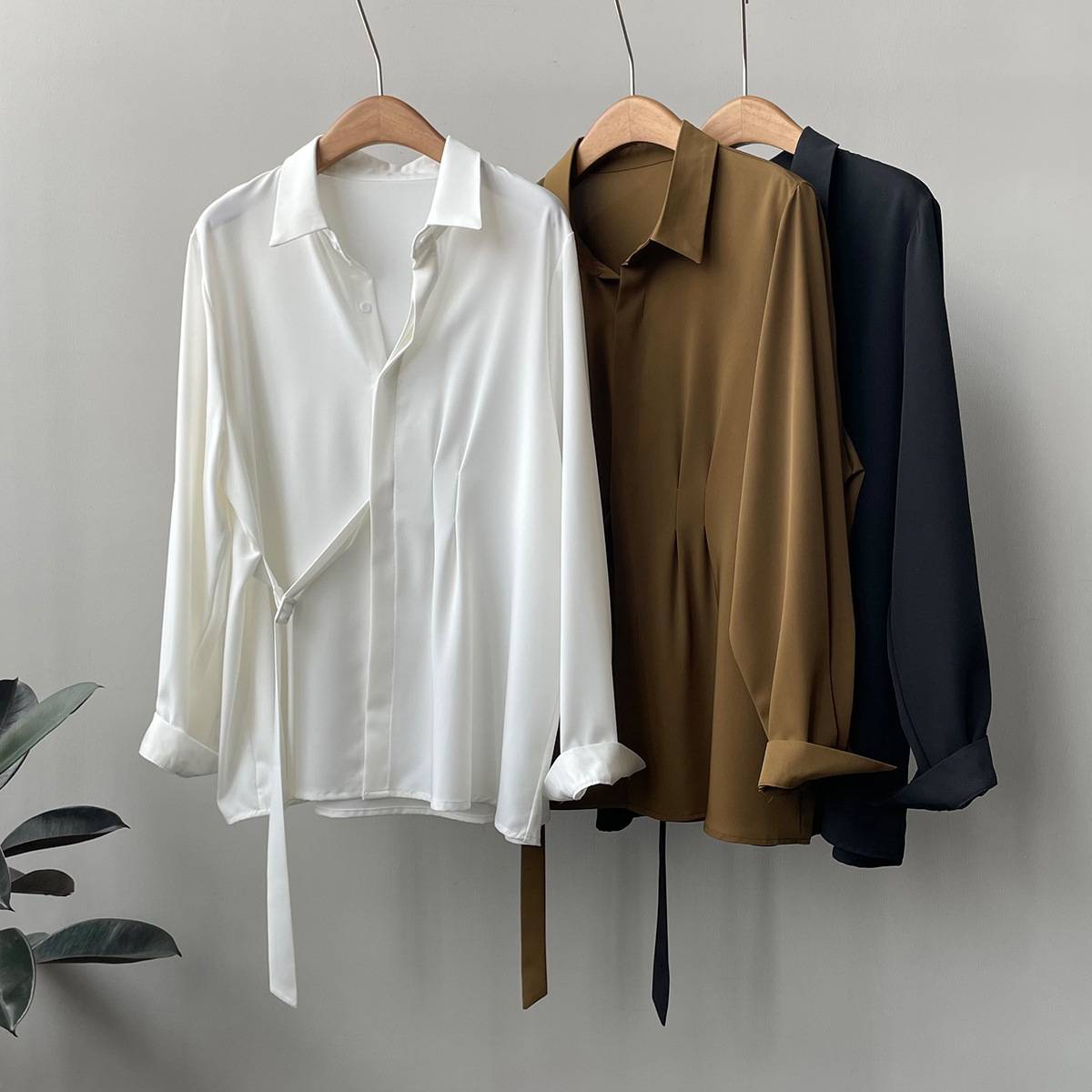 言双 设计感长袖衬衫女 春季新款宽松显瘦系带垂感衬衣80621