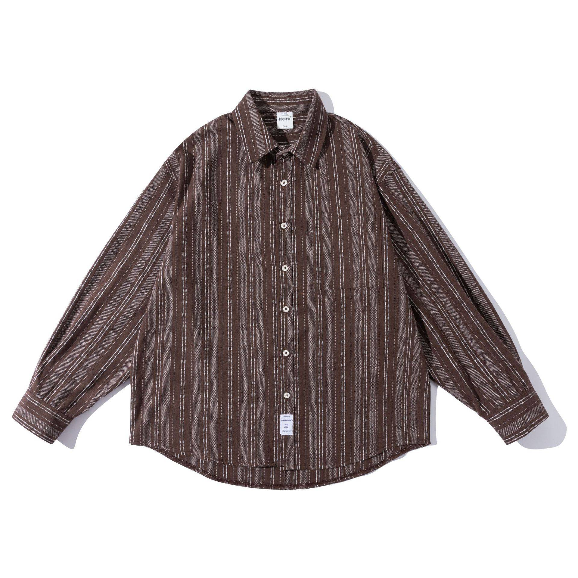 森波服饰2023冬季新品日系宽松型简约休闲口袋条纹休闲衬衫CS929