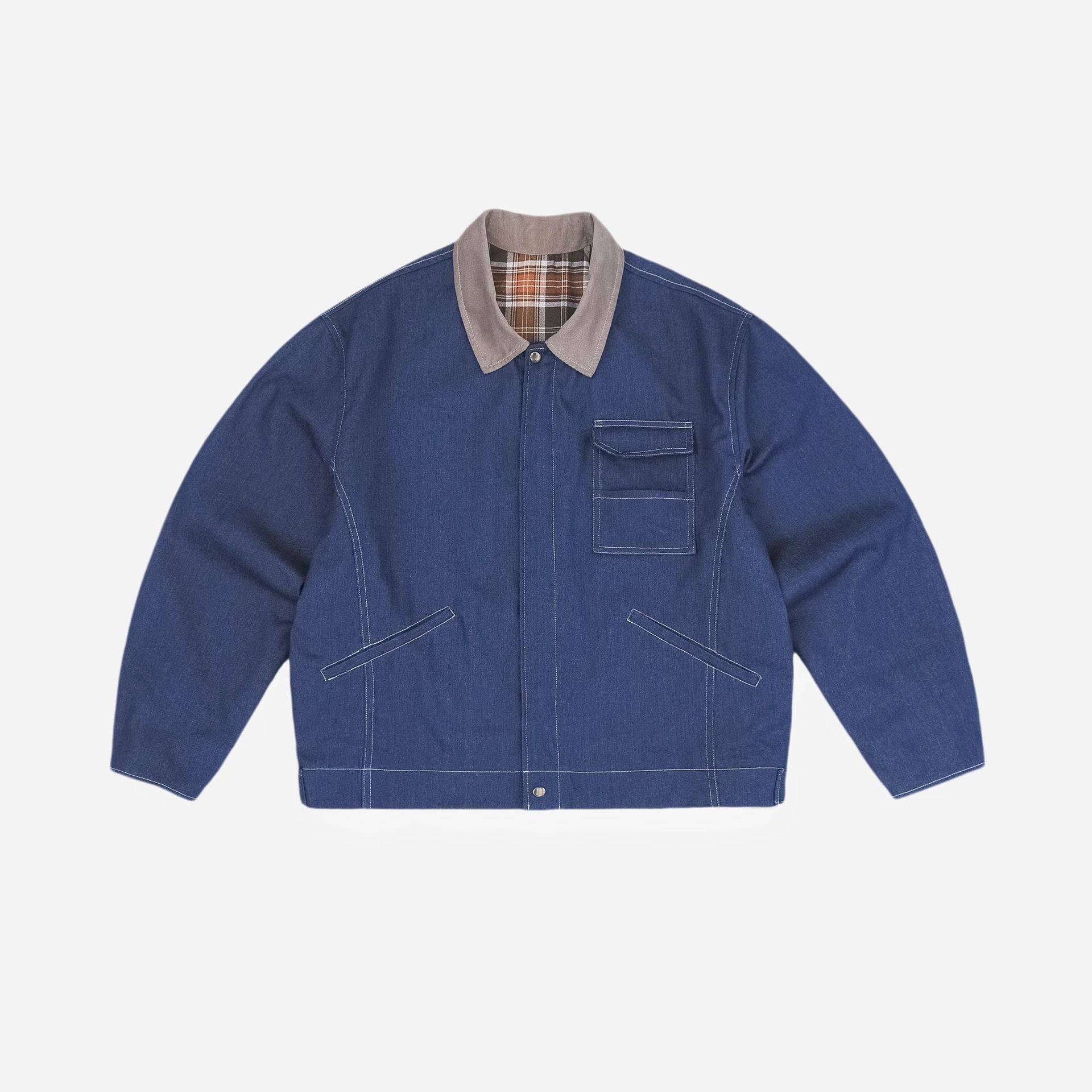 MAMINQIN新款巴恩风原色牛仔口袋工装夹克男女宽松灯芯绒