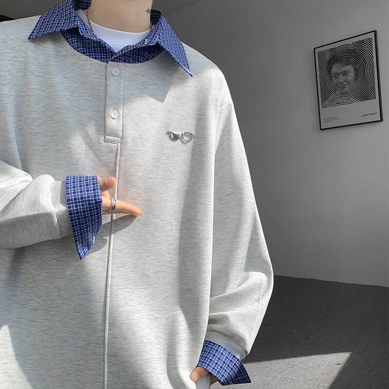 美式假两件衬衫领卫衣男春秋2025新款痞帅重磅套头长袖上衣高级感