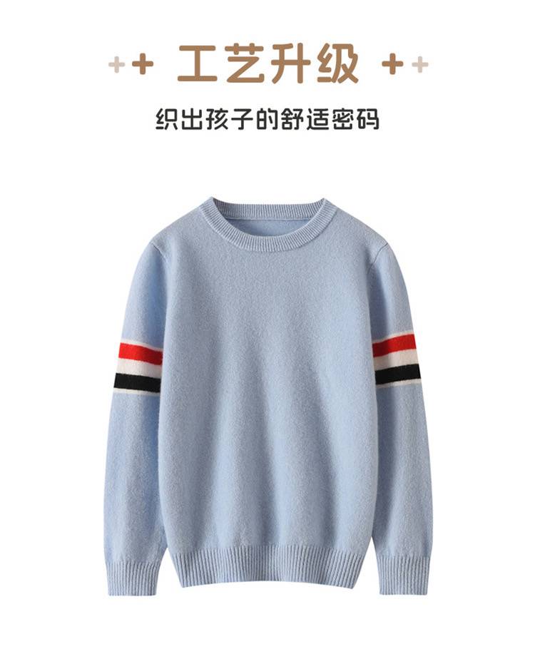 24秋冬新款中大童百搭圆领12针三色袖100%羊毛衫男女童上衣打底衫
