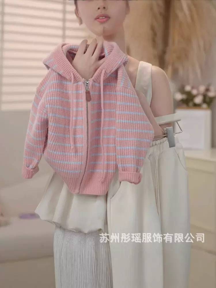 女童连帽毛衣2024春秋款中大童针织衫长袖套头开衫拉链上衣外套潮