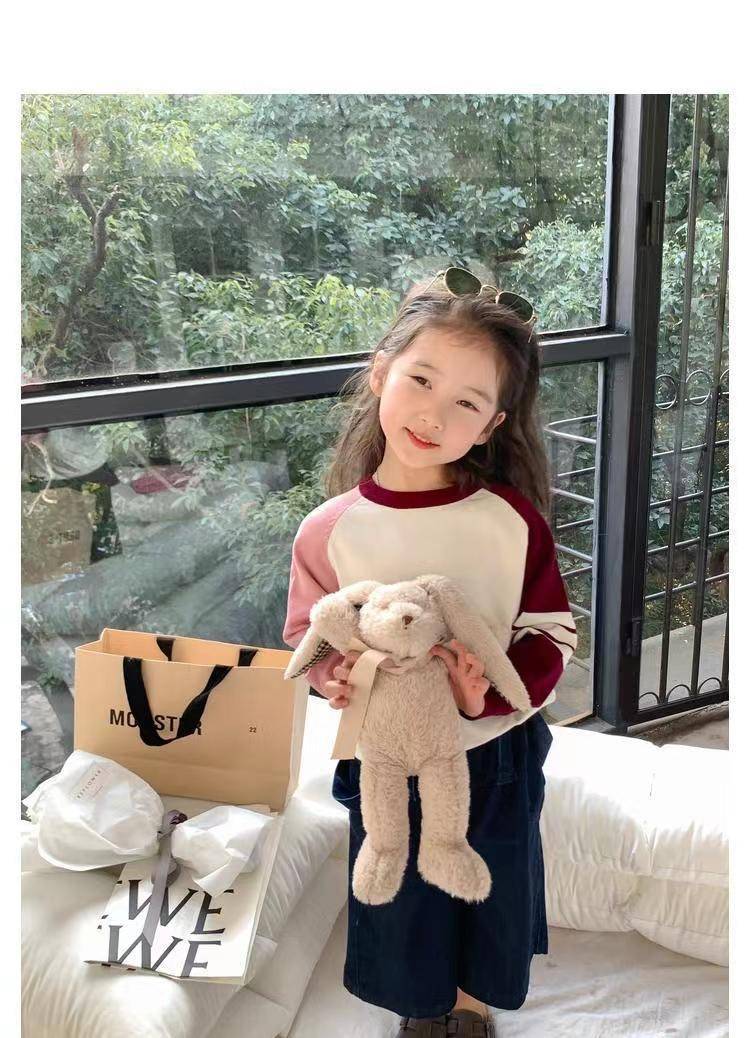 女童2023撞色韩版百搭插肩袖圆领毛衣春装新款休闲针织衫tb上衣潮