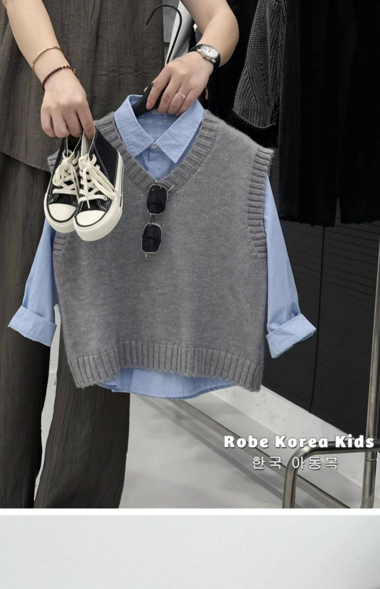 【高品质】童装学院风两件套蓝色长袖衬衫针织马甲韩版休闲套装